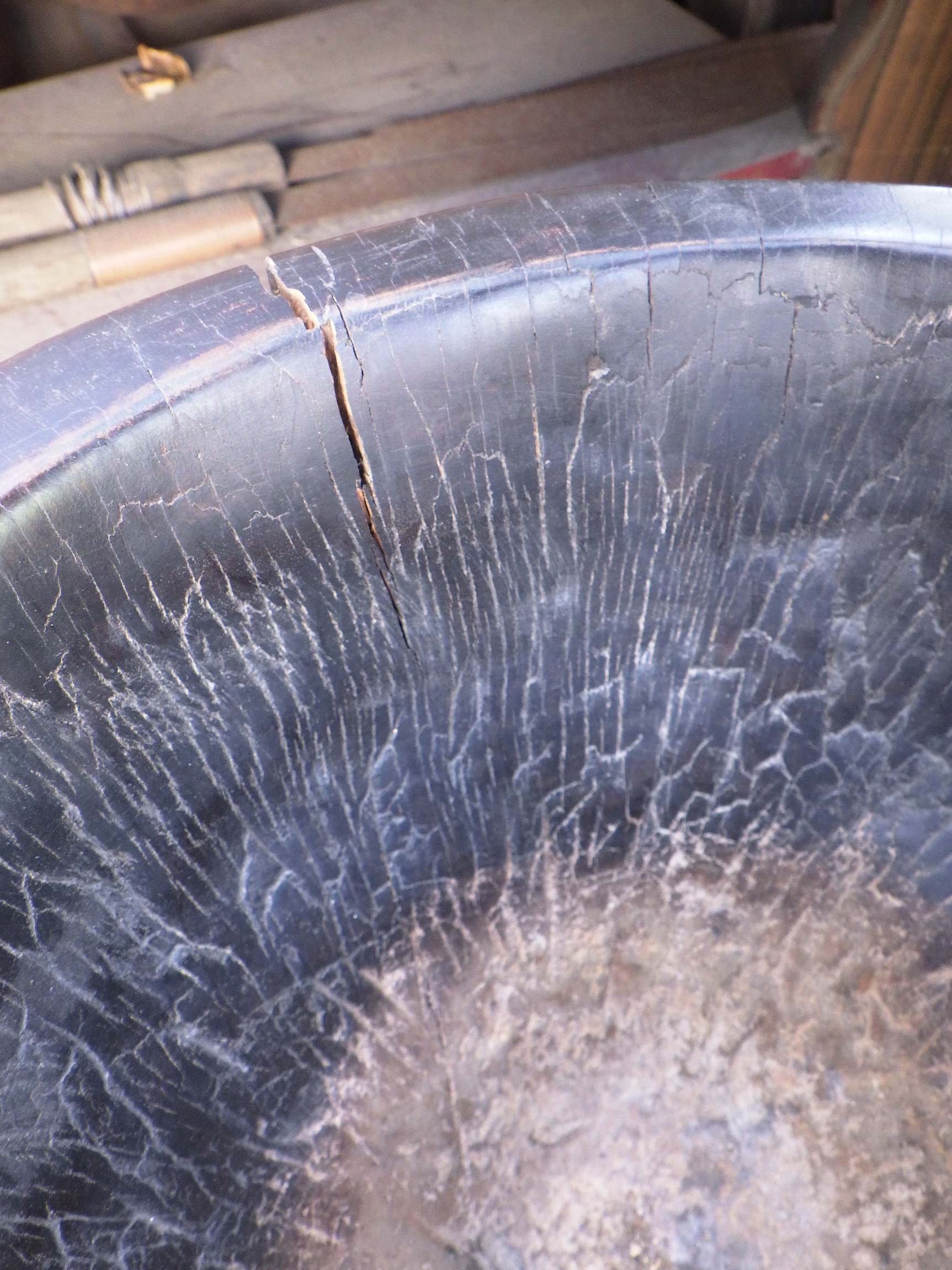 割れている箇所がありますが、人の手技を感じる独特の歪みが味わい深い一品。ご購入の際は、杵もおまけでお付けいたします。
